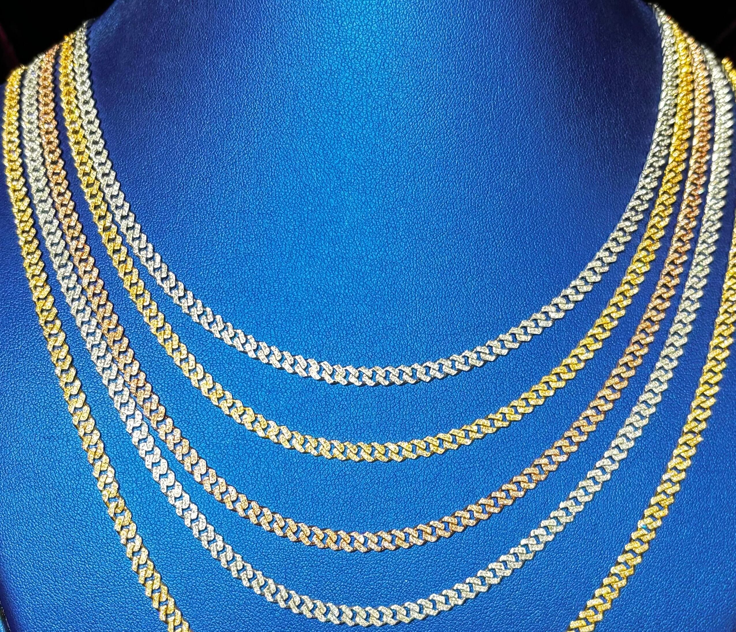 10K PG YG WG Diamond Miami Link Chain